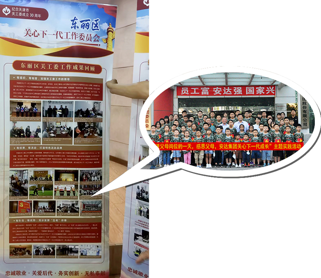按照市關工委工作安排,為深入學習貫徹習近平總書記關于關心下一代工作重要指示和視察天津重要講話精神,更好展示基層工作成果,進一步發揮各級關工委和廣大“五老”在教育引導和關愛保護青少年工作中的積極作用,推動關心下一代事業高質量發展,區關工委組織開展《天津市關工委成立30周年紀念成果展》觀展活動。安達集團黨委書記、董事長崔洪金作為區關工委委員受邀參加觀展。老干部局局長、關工委委員郝寶杰,老干部局副局長、關工委委員柴恭慶全程陪同接待。安達集團“走進父母崗位的一天,感恩父母,關心下一代成長”主題活動被選為東麗區優秀案例參加巡展。豐富多彩的活動,充分展現了各級關工委對下一代工作的高度重視和積極踐行。崔洪金董事長同樣表示:未來安達集團關工委將積極履行社會責任,持續為關心下一代事業發展不懈努力。